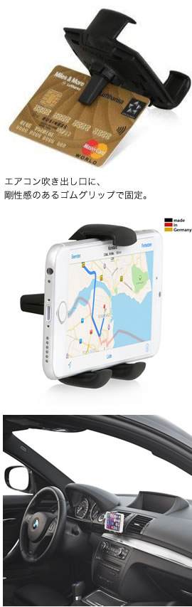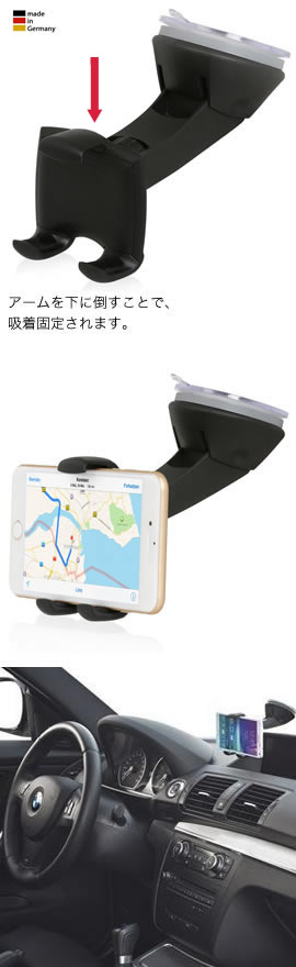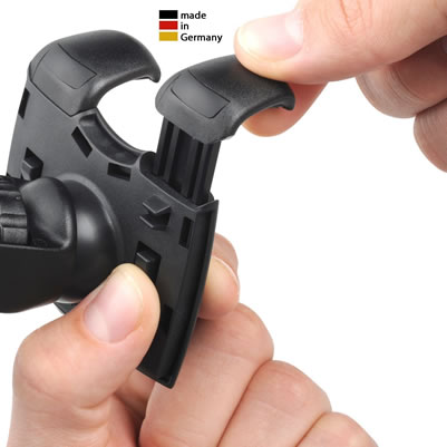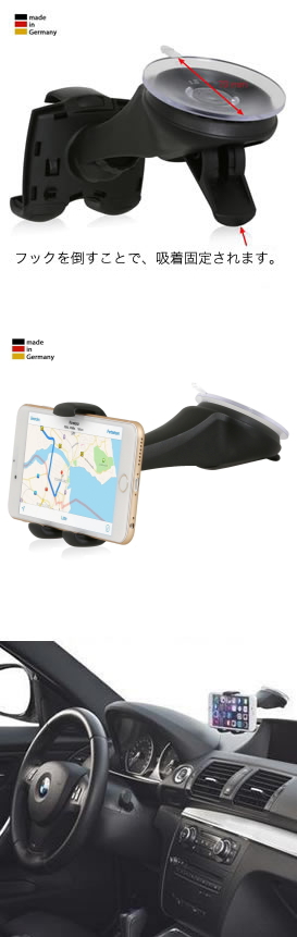 品質も安心のドイツ製で、落下の心配のないフックグリッパーを装備したホルダーは、幅58~82mmの機器に対応しておりますので、機種変更した場合でもずっと使えます。